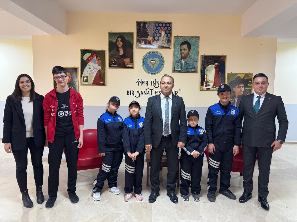 Türk Polis Teşkilatı'nın 180. Kuruluş Yıl Dönümü münasebetiyle Osmaniye İl Emniyet Müdürü Sn. Mehmet SARIBUVA' yı makamında ziyaret ederek İl Emniyet Müdürümüz nezdinde bütün emniyet teşkilatının gününü kutladık. Polis sevgisi ile kalpleri atan minik öğrencilerimiz çizdikleri resimleri Emniyet Müdürümüze sundular. 180 yıllık şanlı mazisi boyunca bizlere güven veren bütün Emniyet mensuplarının gününü kutlarız.